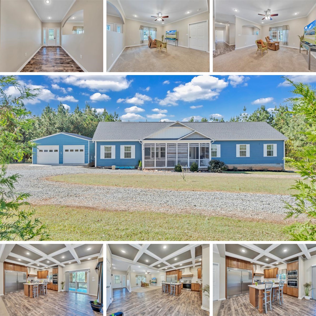 Step outside & you'll find a delightful screened porch, ideal for sipping your morning coffee while taking in the serene views. There's also a deck that overlooks the expansive acreage, perfect for entertaining or simply relaxing in the fresh air. Plus, the deck connects to a two-car detached garage, which even has 100 amp service for all your hobbies! If you love the outdoors, this property is zoned A1.